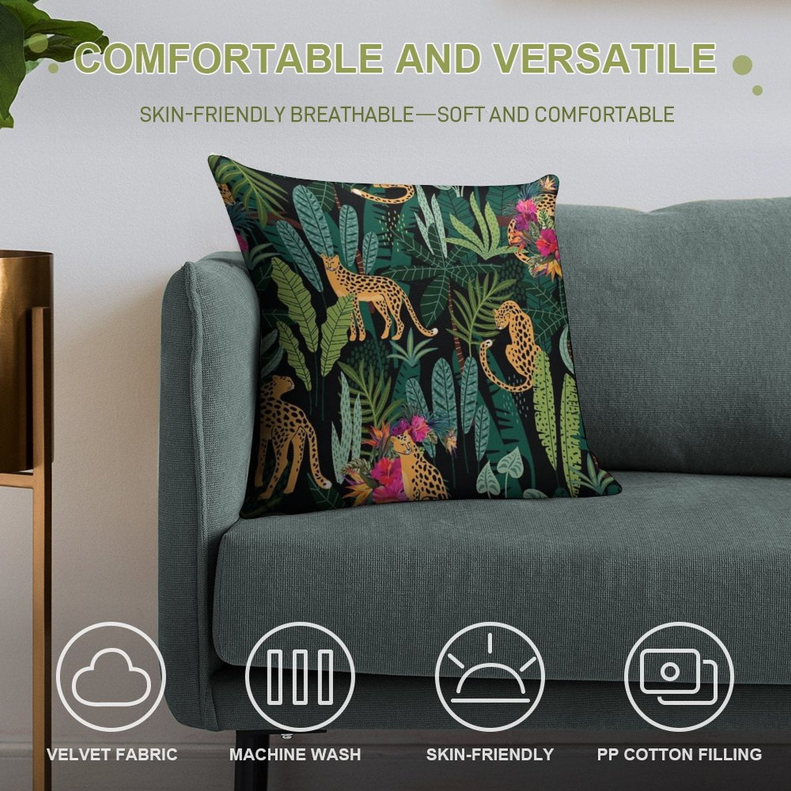 Tropical Cheetah Print Soft Hidden Zipper Throw Pillow