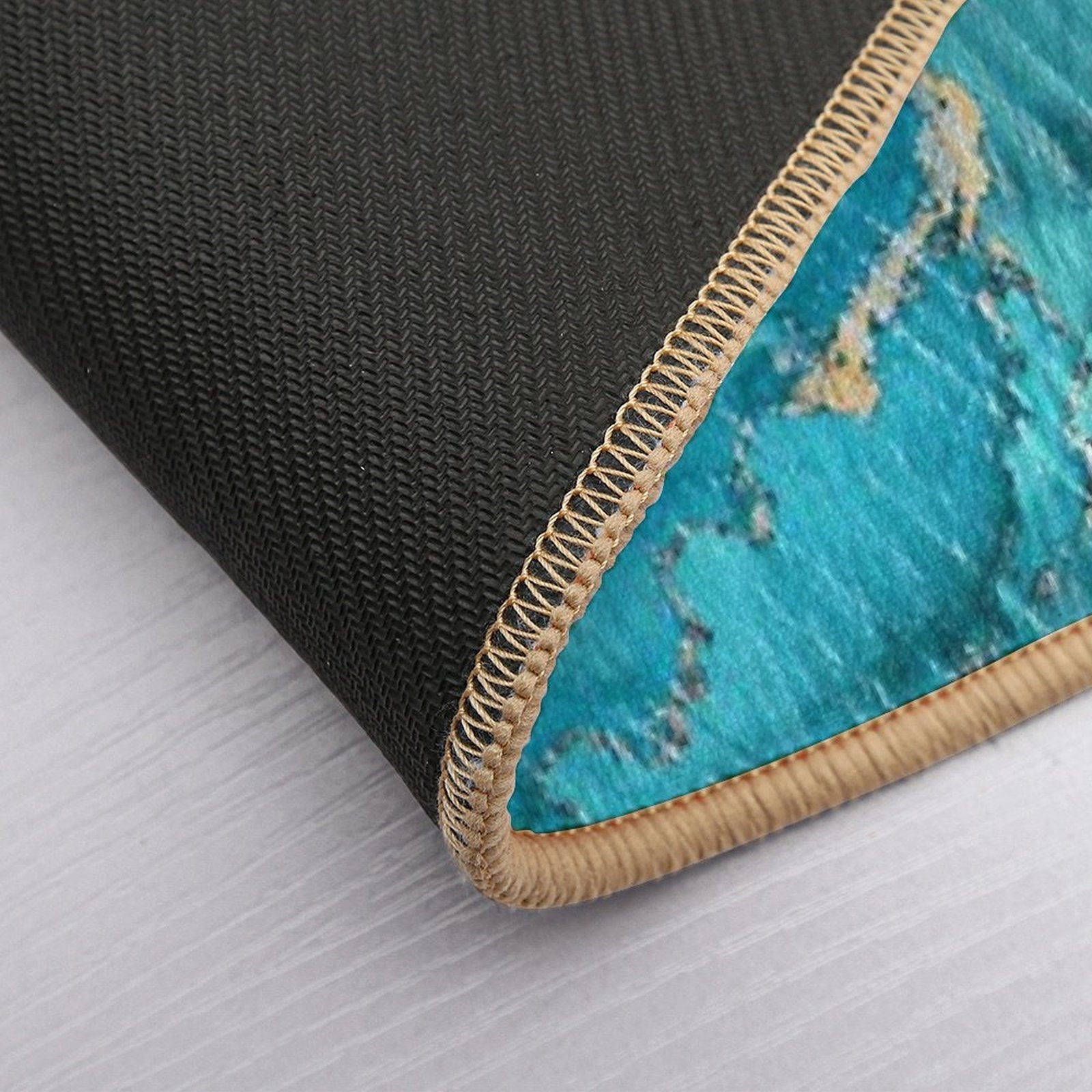- Non-slip rubber backing grips floors securely, ideal for Turquoise Aqua Gold Ocean Mat placements on tiles, wood, or marble.
