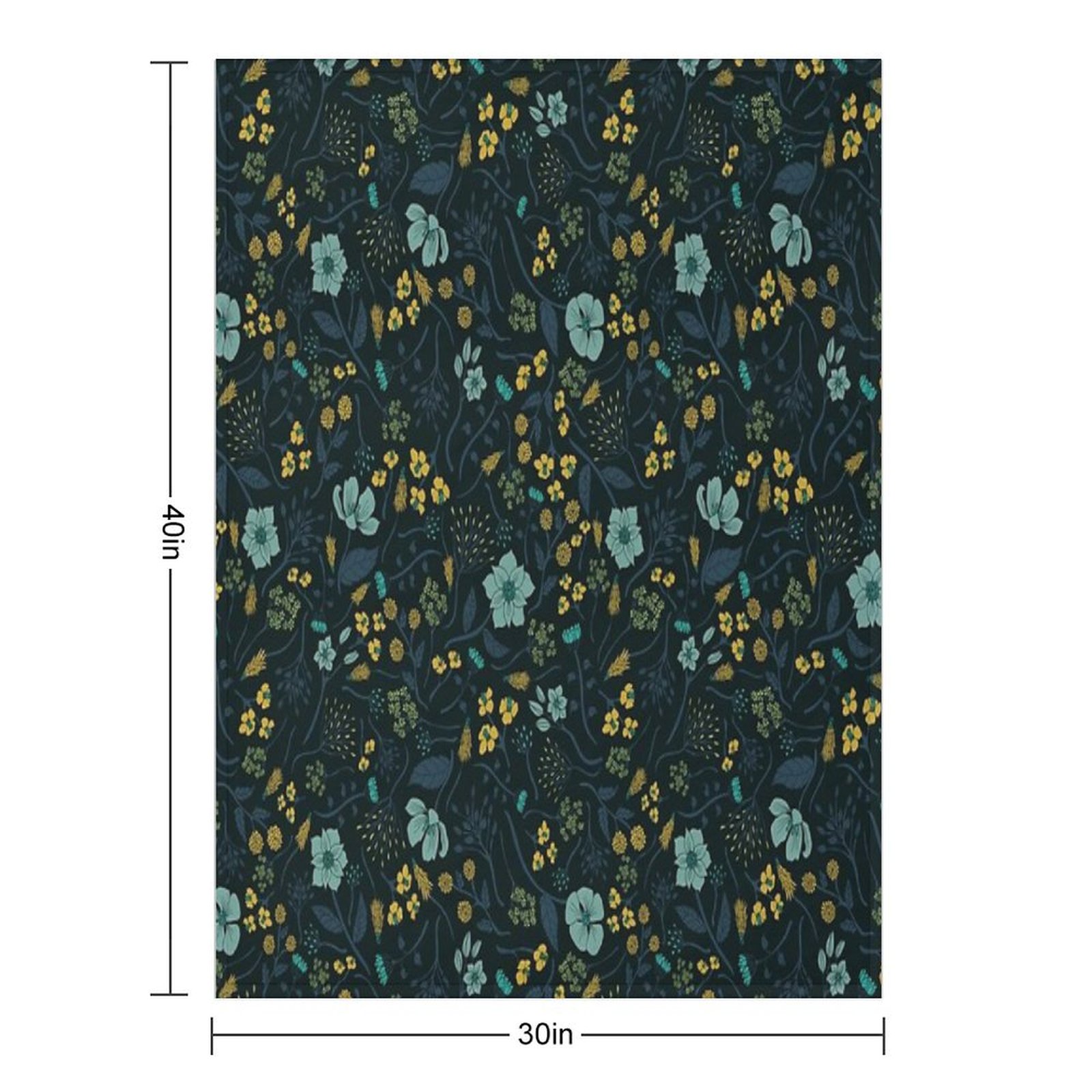 Turquoise, Yellow, Green & Dark Blue Floral Pattern Throw Blanket