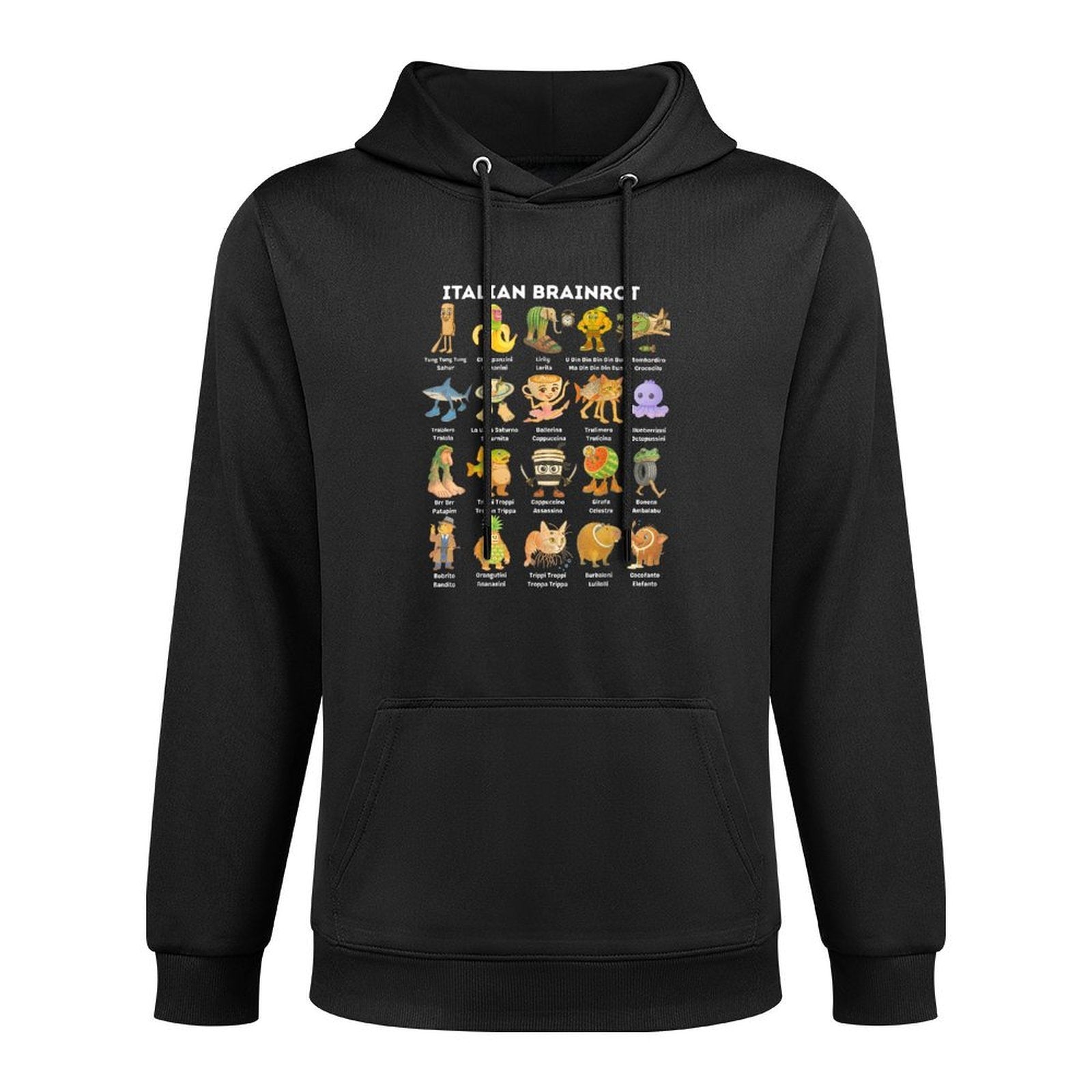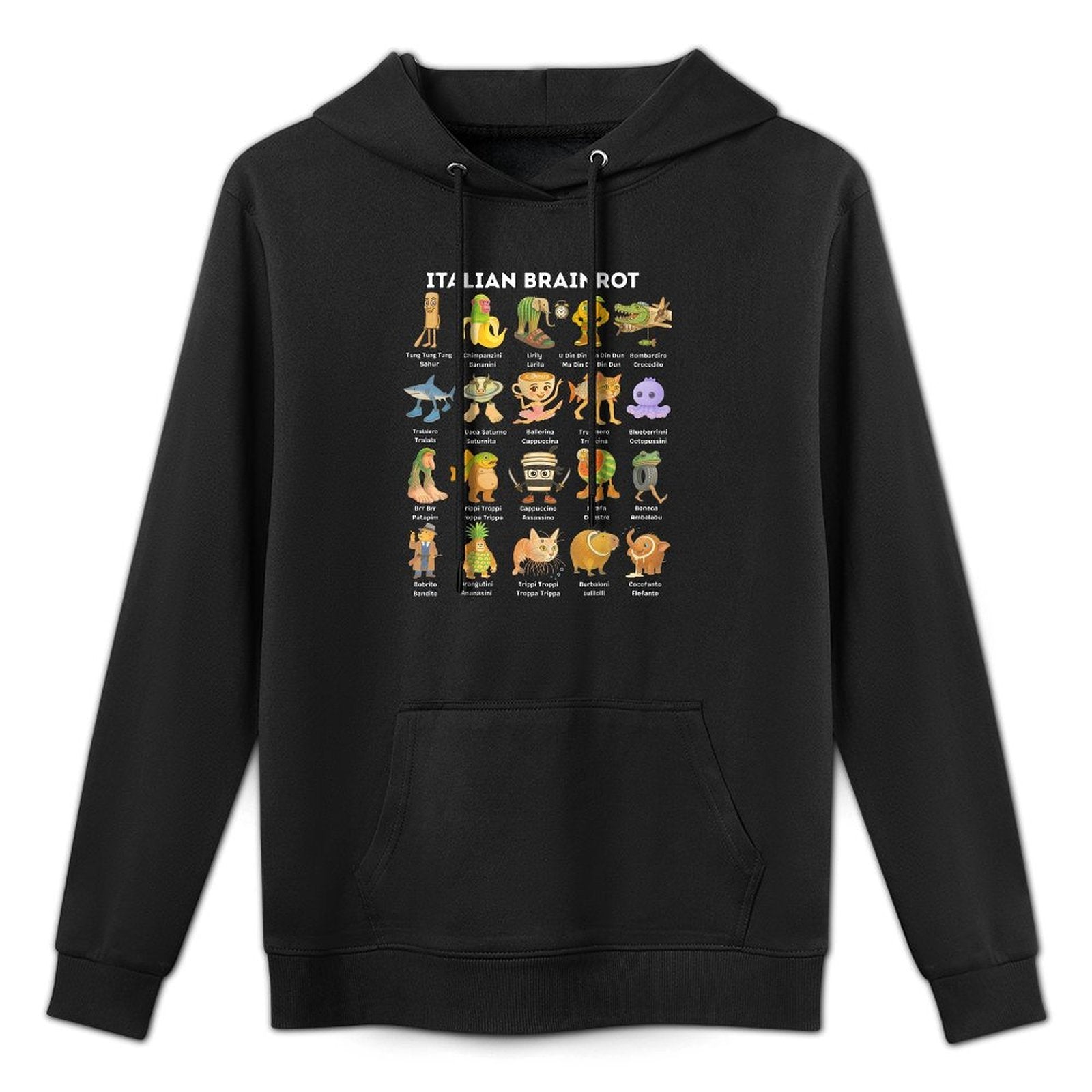 Types of Italian Brainrot Meme Character Hand Drawn for Kids Adjustable Hood Hoodie