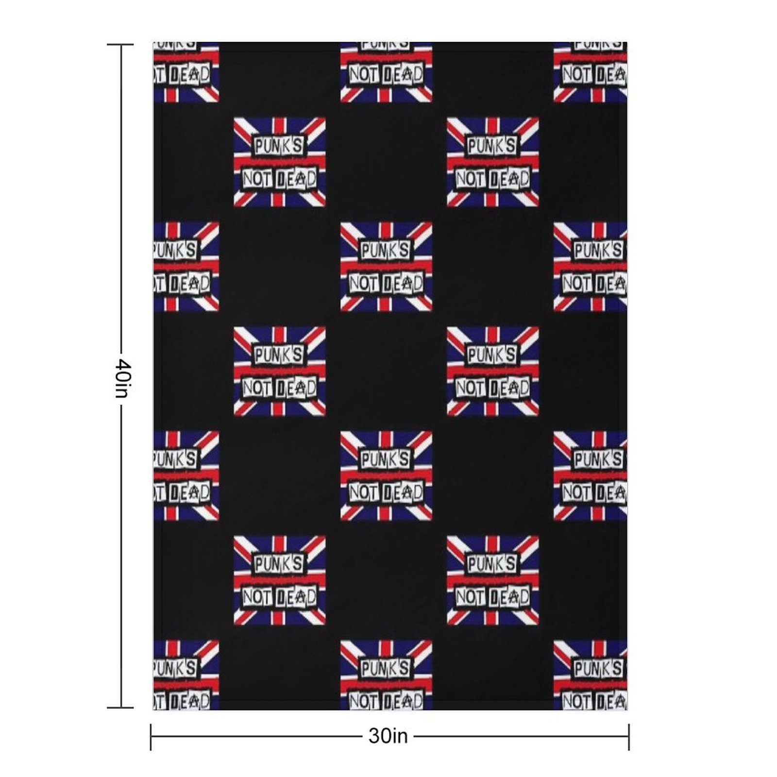 Union Jack. Punks Not Dead Blanket Size Chart: