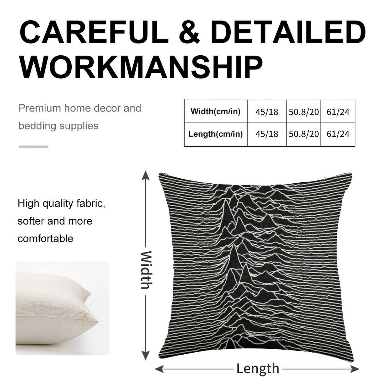 - Machine or hand washable (max 45°C). Avoid bleach and prolonged soaking to preserve the vibrant texture of your Unknown Pleasures [J01] Luxury Pillow Cover.