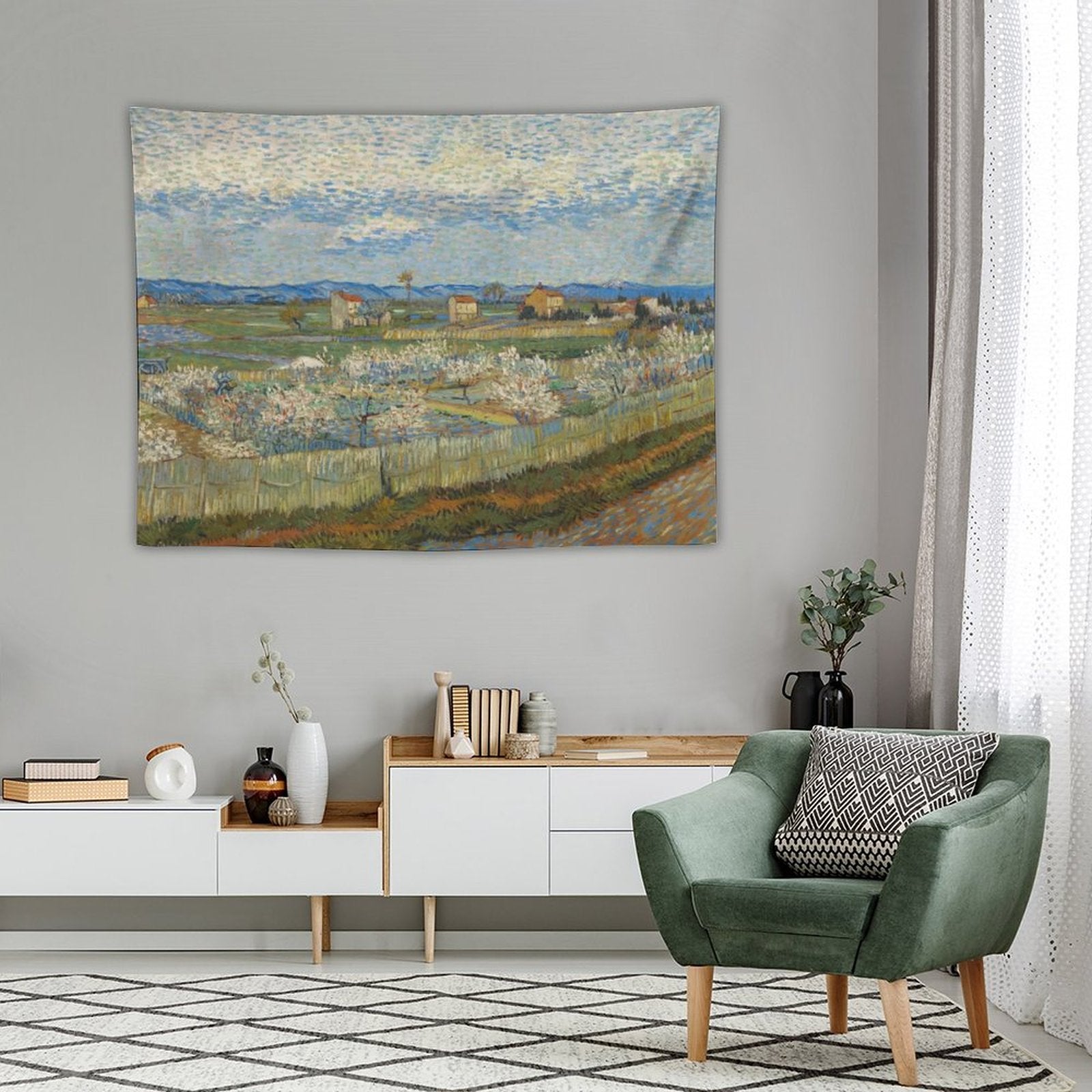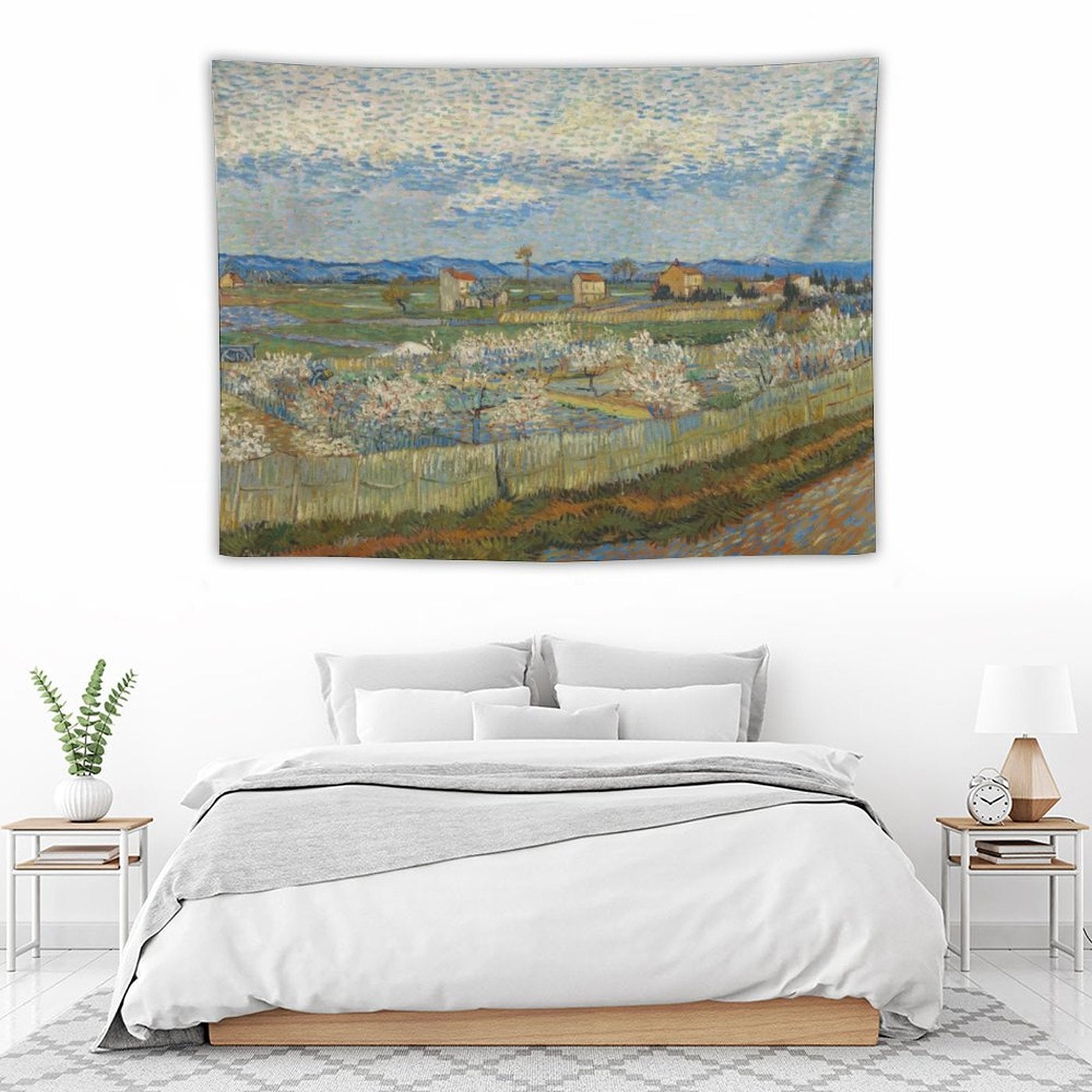 BionZax's Van Gogh’s Peach Trees in Blossom Tapestry for Bedroom, College Dorm. Van Gogh’s Peach Trees in Blossom Abstract Art Painting Tapestry to decorate your bedroom, college dorm, living room, or kitchen wall, it is the best gift for funny, meme, aesthetic, trendy, simple, fashion, music, abstract, fantasy, modern tapestry for girls, men, boys, teen, women, kids.
