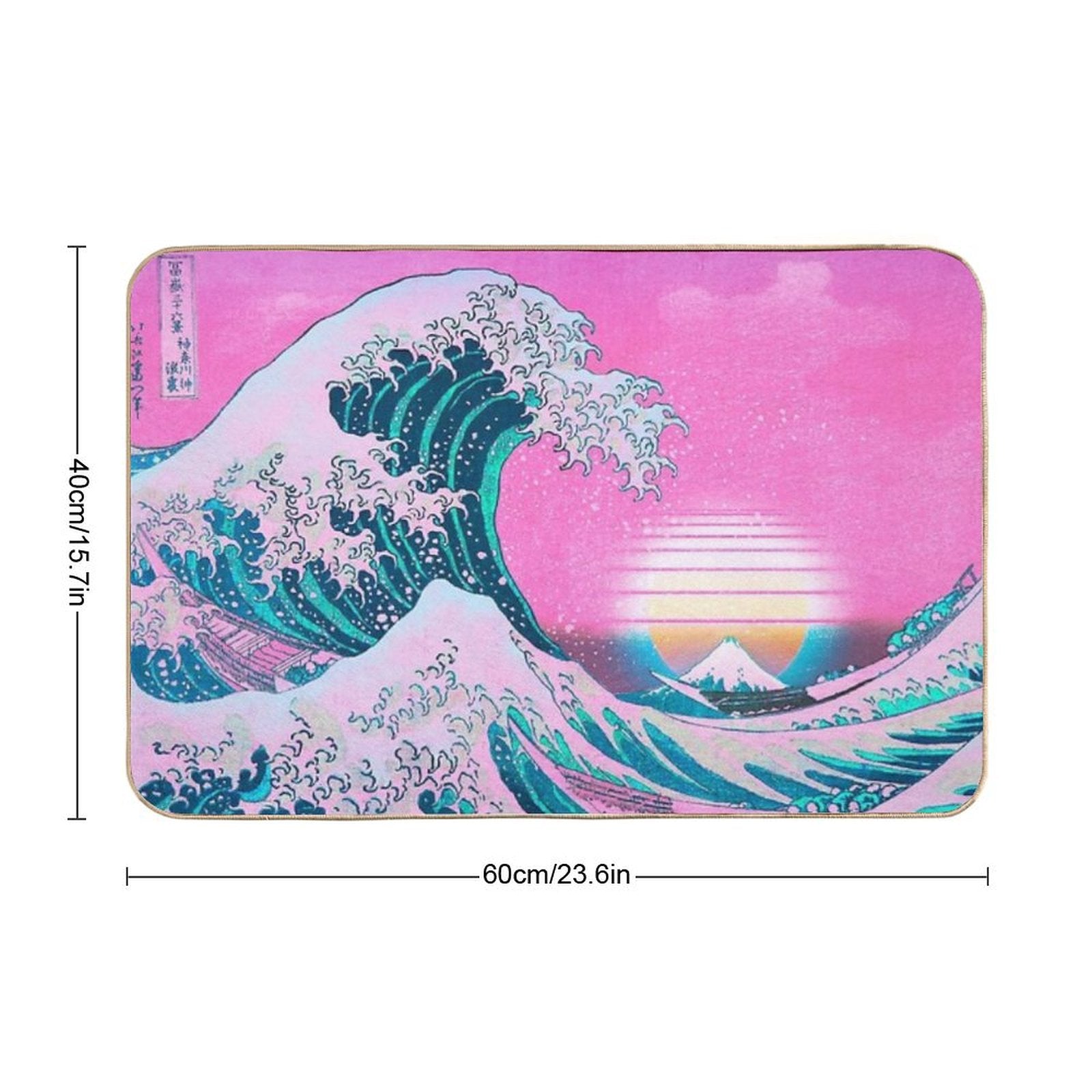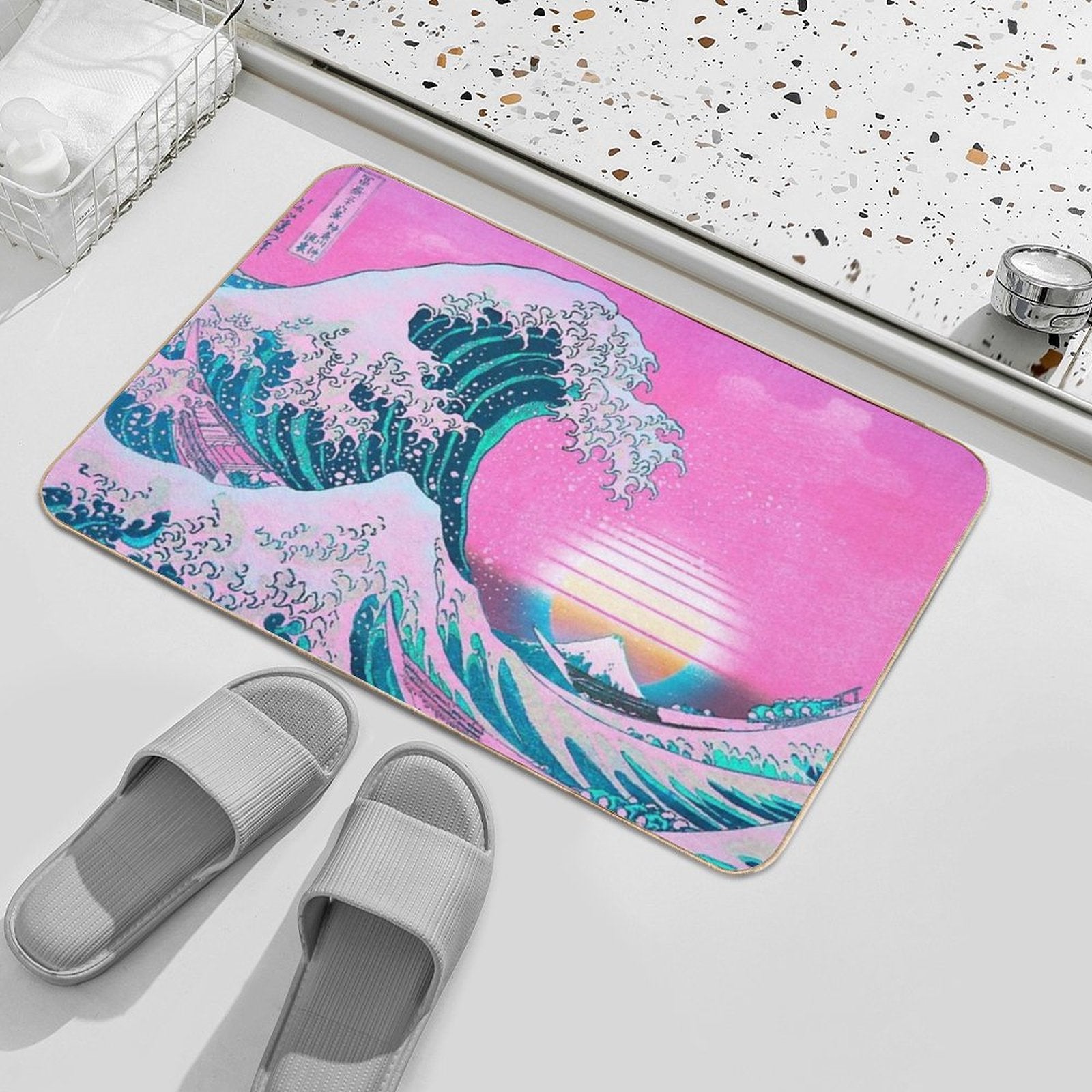 - Use as a vanity rug, guest suite accent, or mudroom defender – the Vaporwave Aesthetic Great Wave Off Kanagawa Retro Sunset Mat adapts to any space.