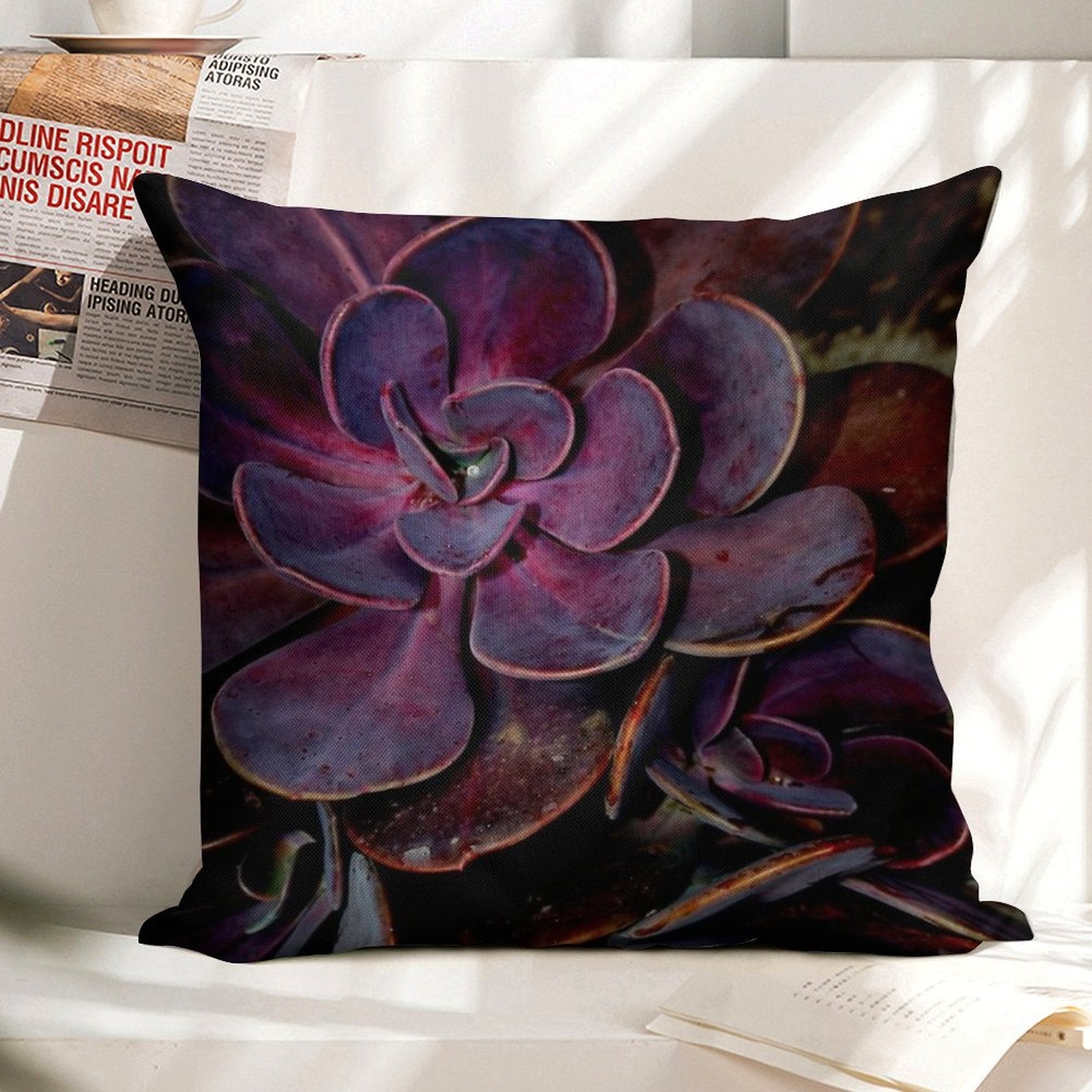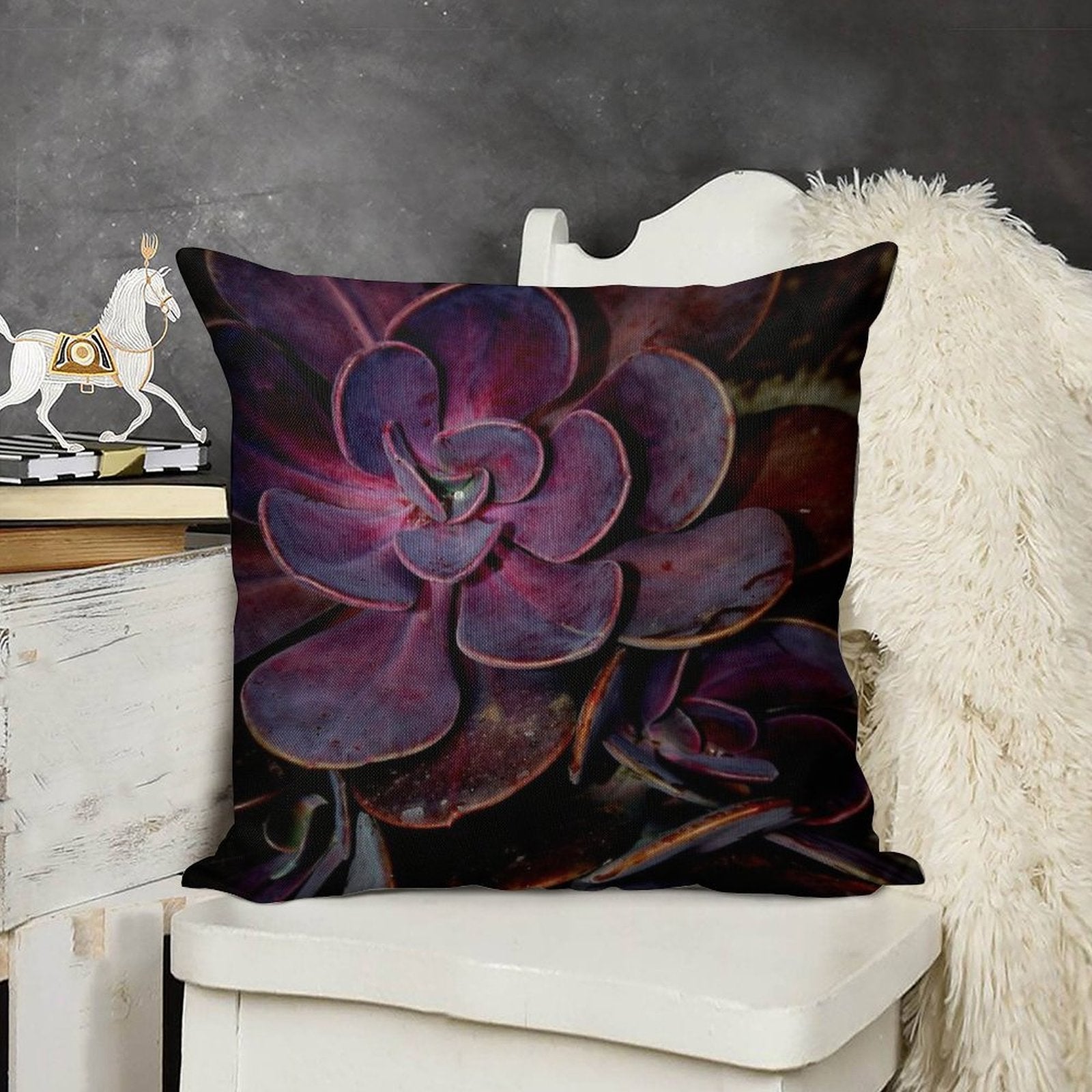 Velvet Aubergine Cactus Linen Throw Pillow Cover