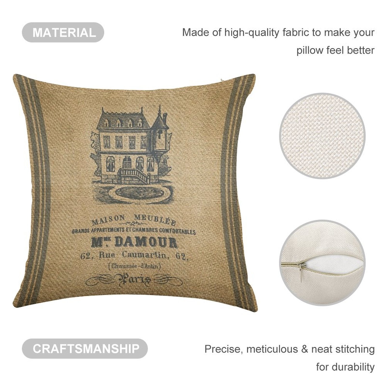 - Double-Stitched Edges: Precision stitching prevents fraying, stretching, and pilling, ensuring your Vintage Burlap French House Design Linen Throw Pillow Cover stays pristine through countless uses.