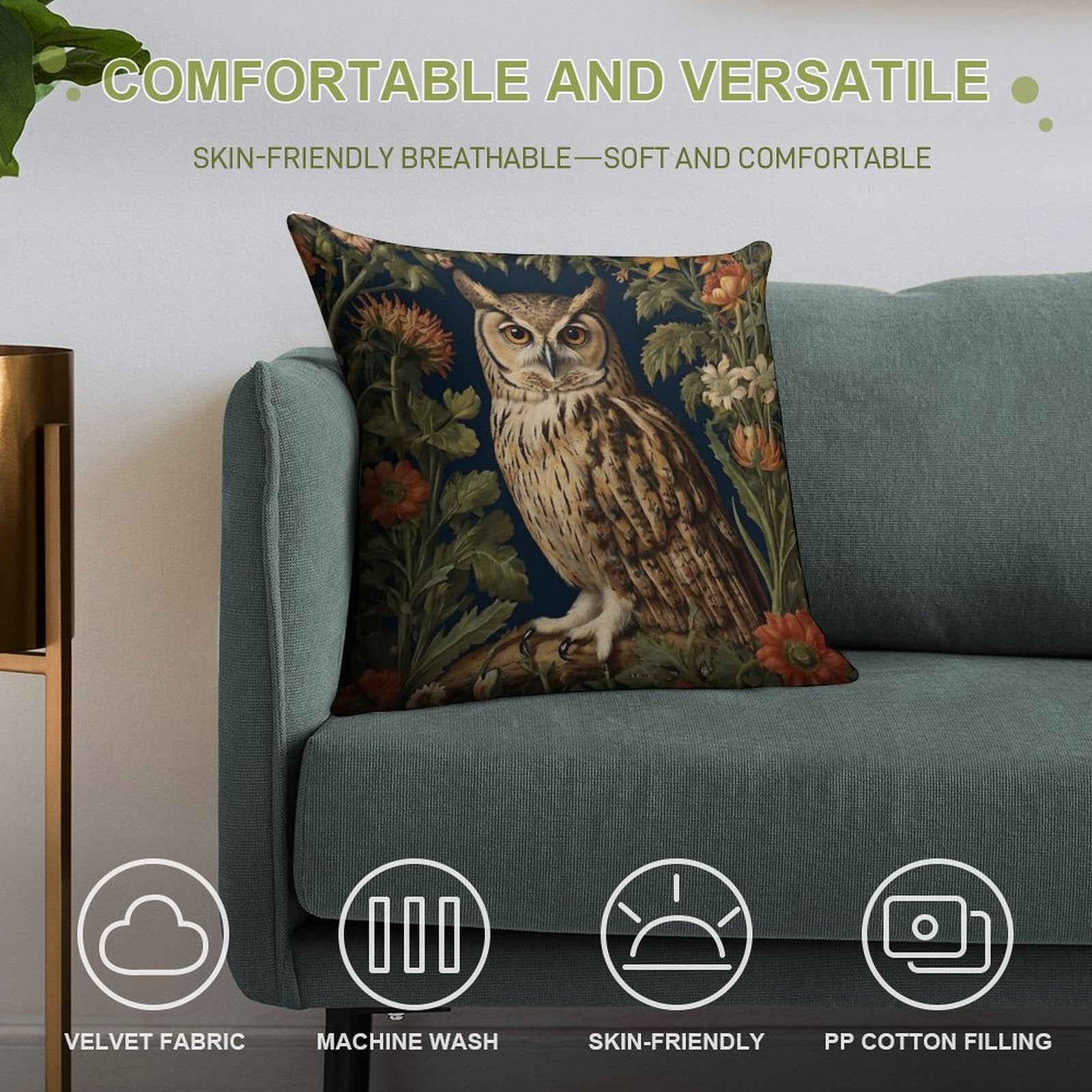 Vintage Forest Owl William Morris Style Soft Style Accent Throw Pillow