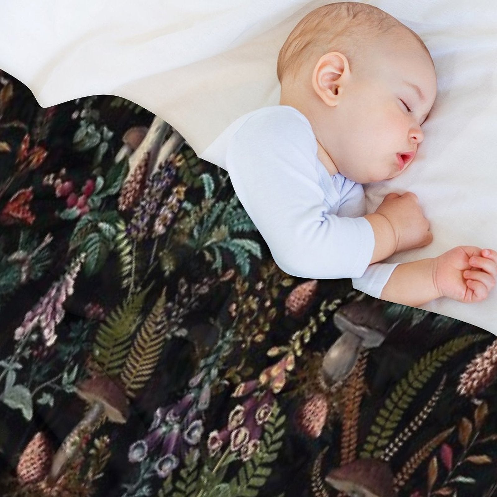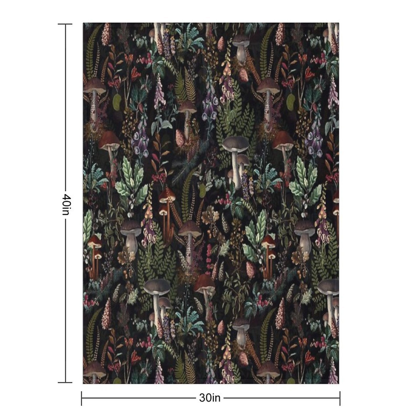 Vintage Mysterious Mushrooms Forest Botanical Botanical Night Garden Pattern NightGarden Blanket Size Chart: