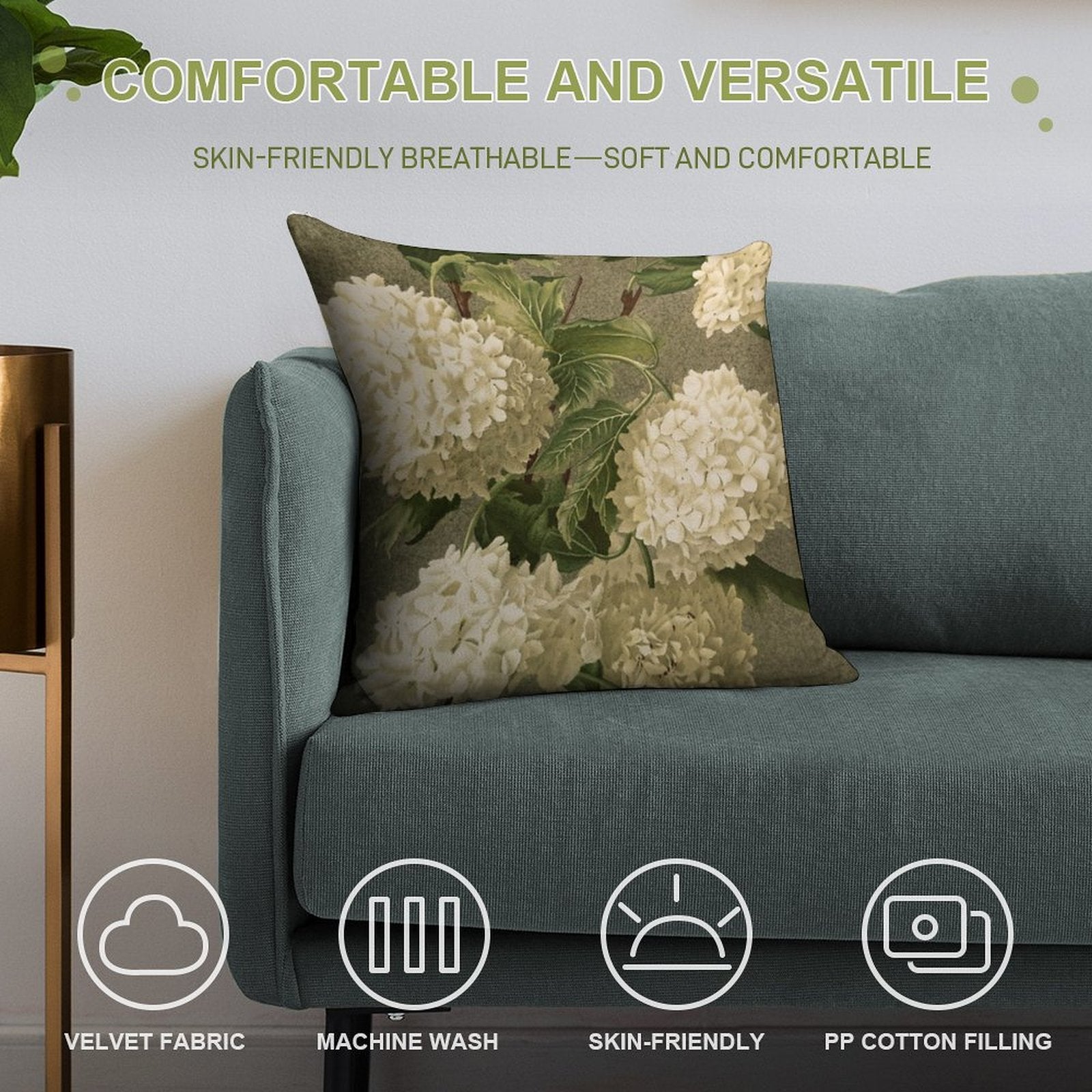 Vintage Victorian White Hydrangea Floral Soft High-Density Material Throw Pillow