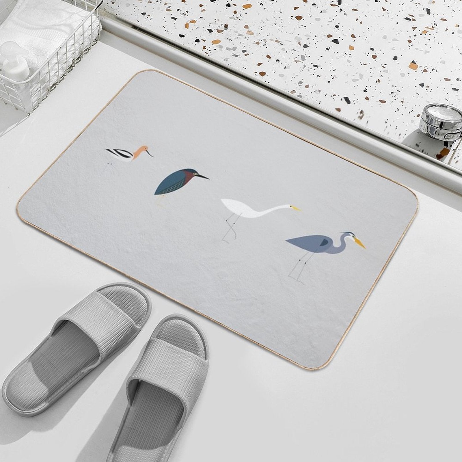 - Use as a vanity rug, guest suite accent, or mudroom defender – the Wading Birds of North America (Blue Heron, Green Heron, Egret, Avocet) Mat adapts to any space.