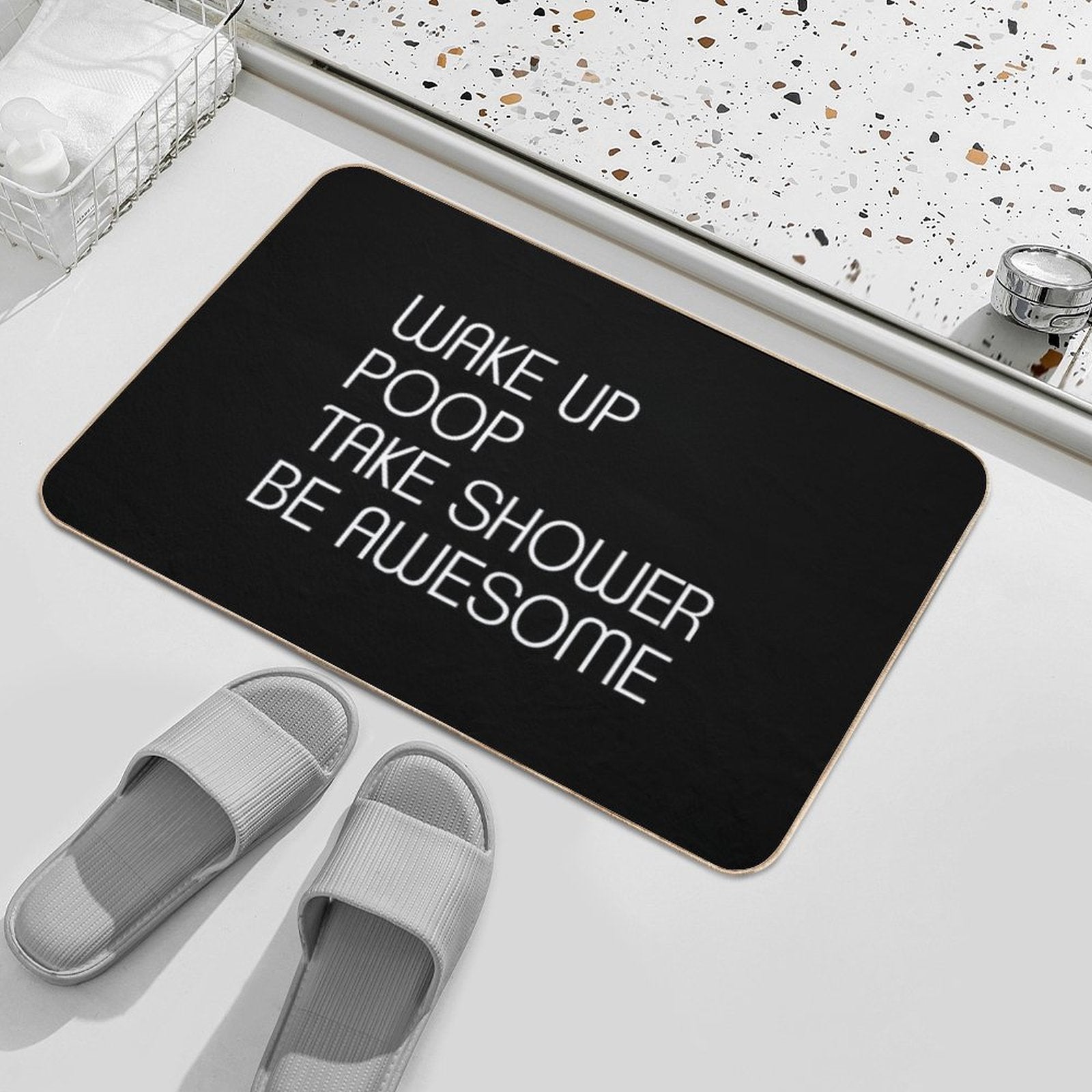 - Use as a vanity rug, guest suite accent, or mudroom defender – the Wake Up Poop Take Shower Be Awesome - Funny Bath Mats Mat adapts to any space.
