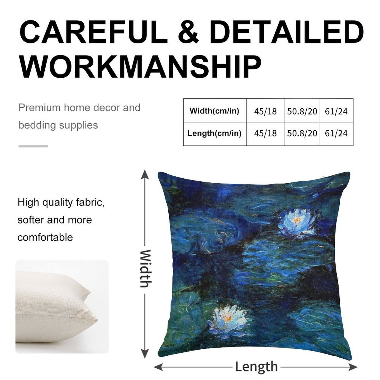 - Machine or hand washable (max 45°C). Avoid bleach and prolonged soaking to preserve the vibrant texture of your Water Lilies Monet Deep Blue Luxury Pillow Cover.