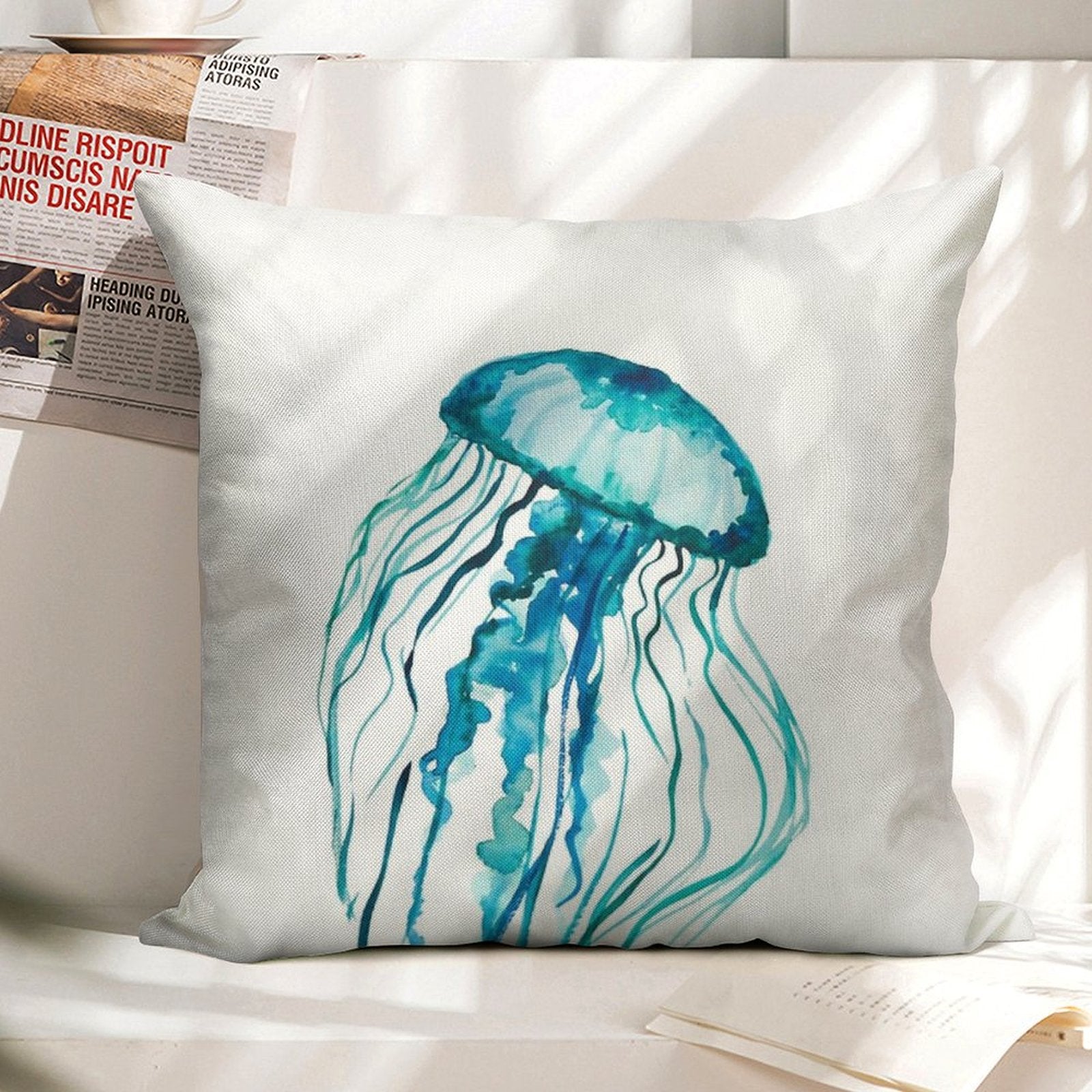 Watercolor Jellyfish Linen Throw Pillow Cover