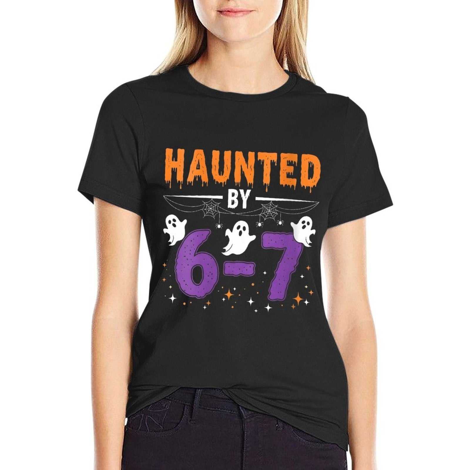 Claim Your Womens Haunted by 67 Funny Haunted by 6-7 Funny 6 7 Halloween T-Shirt Today – [Shop Now] and Own Summer!