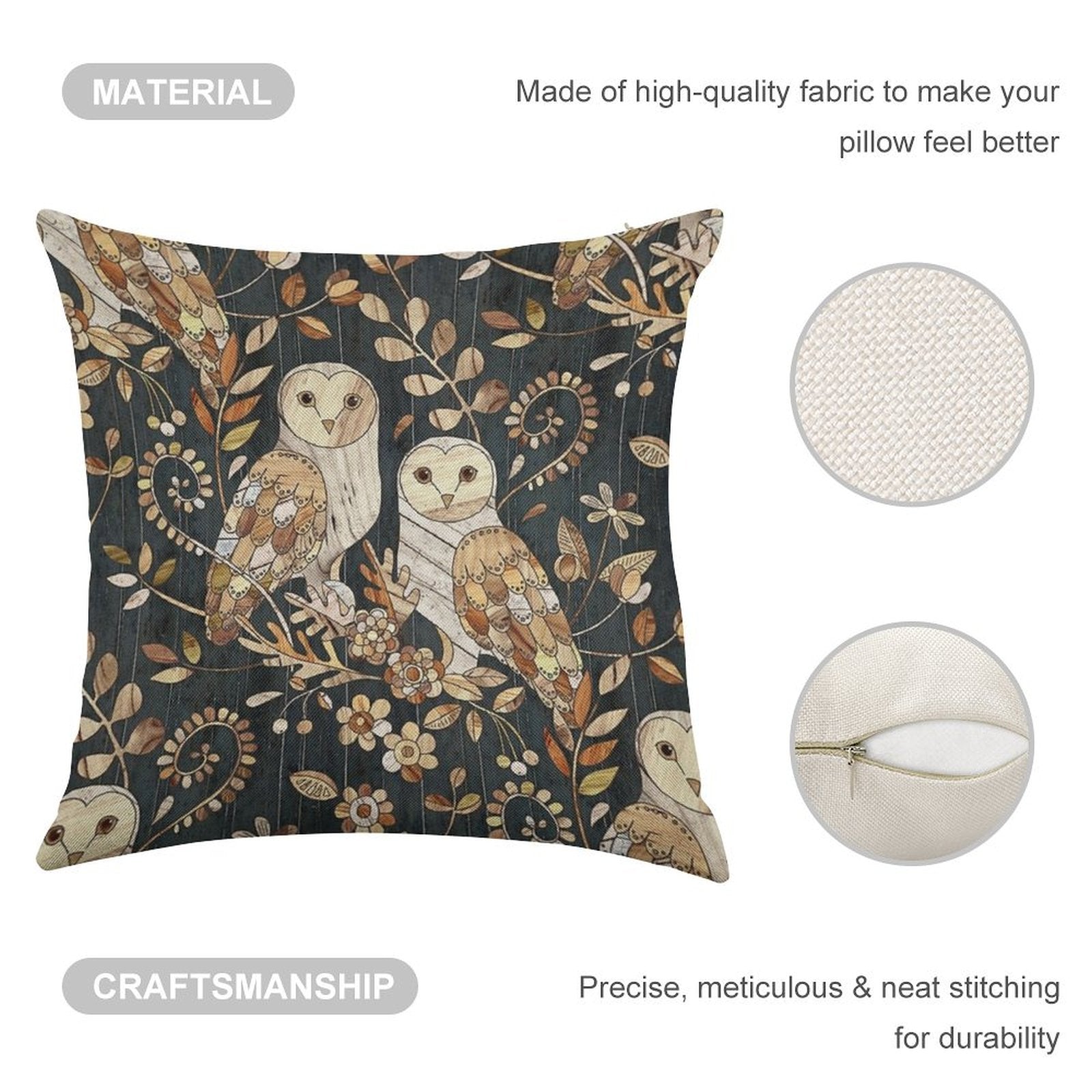 - Double-Stitched Edges: Precision stitching prevents fraying, stretching, and pilling, ensuring your Wooden Wonderland Barn Owl Collage Linen Throw Pillow Cover stays pristine through countless uses.