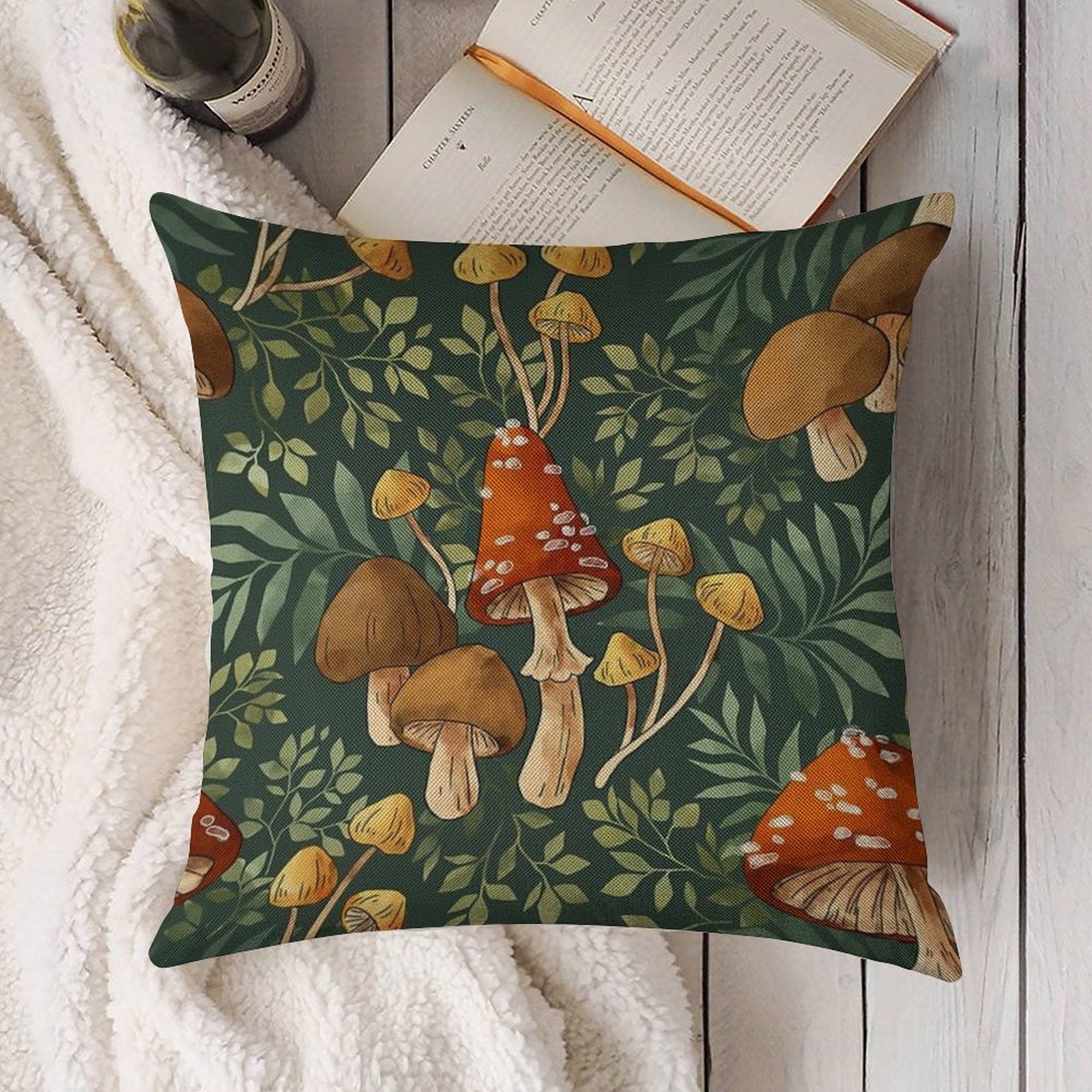 Woodland Mushroom Spray Linen Throw Pillow Cover