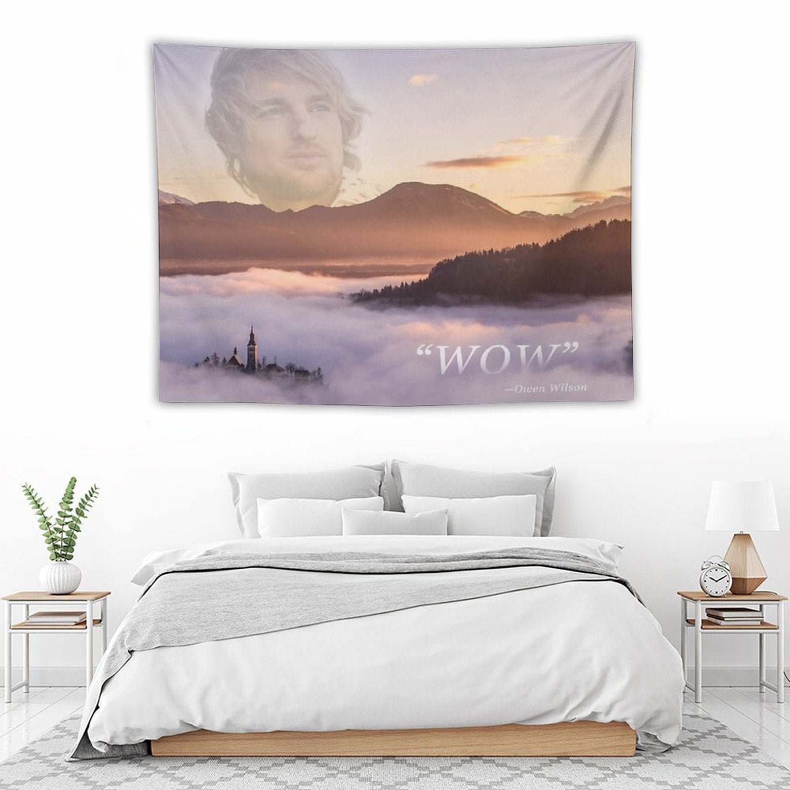 💓【MULTI-FUNCTION】 Used "WOW - Owen Wilson Tapestry" to decorate your bedroom, college dorm, room, living room, kitchen wall, can be used as tapestry or wall hanging, bedspread, tablecloth, dormitory decoration, beach shawl, tablecloth, etc.