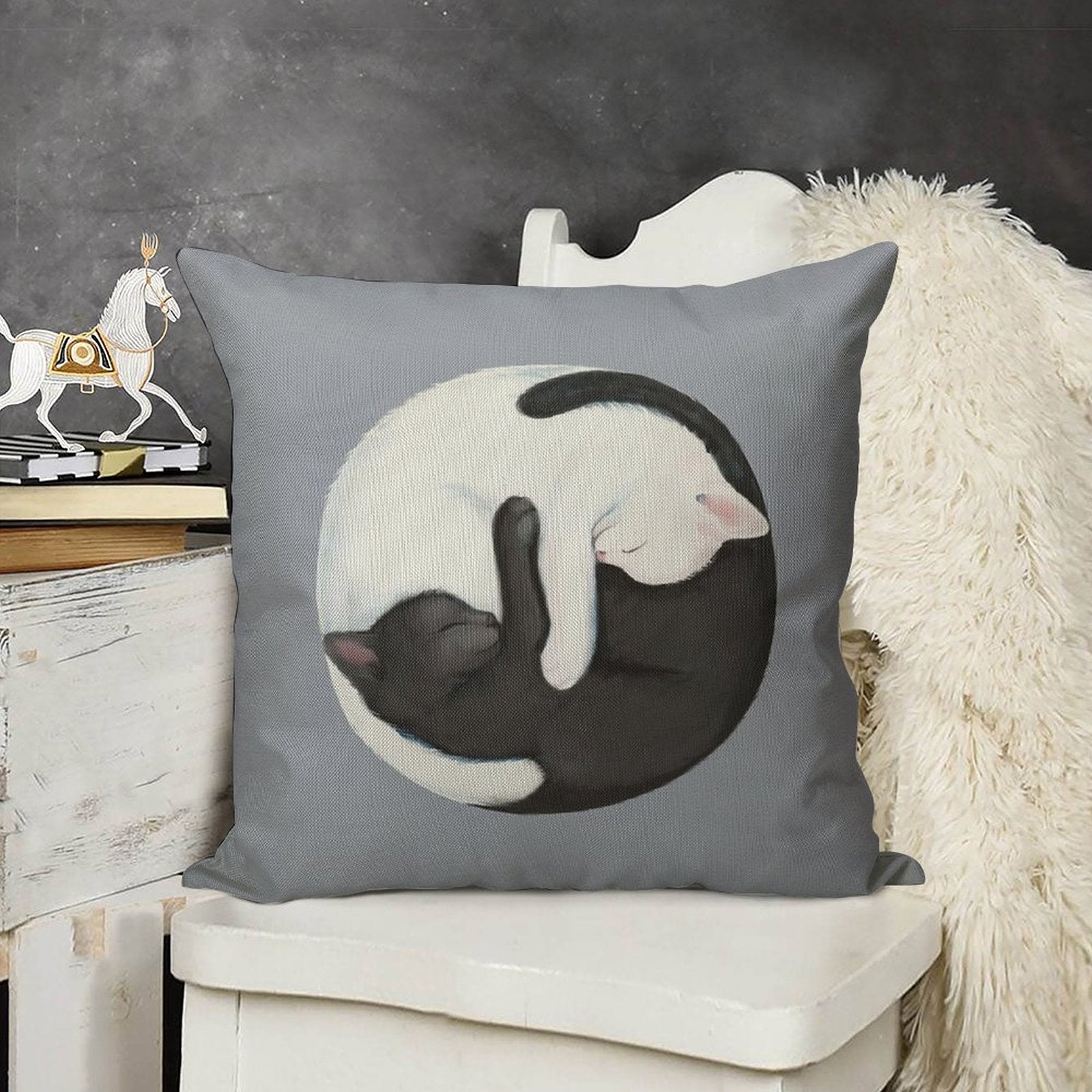 - Machine or hand washable (max 45°C). Avoid bleach and prolonged soaking to preserve the vibrant texture of your Yin Yang Balancing Cats Luxury Pillow Cover.
