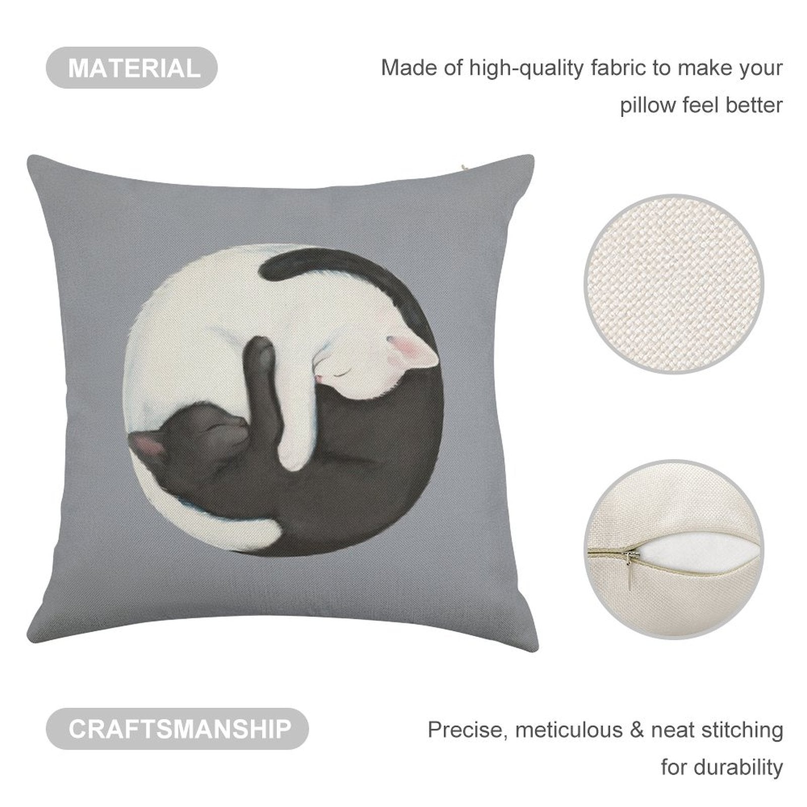 - Double-Stitched Edges: Precision stitching prevents fraying, stretching, and pilling, ensuring your Yin Yang Balancing Cats Linen Throw Pillow Cover stays pristine through countless uses.