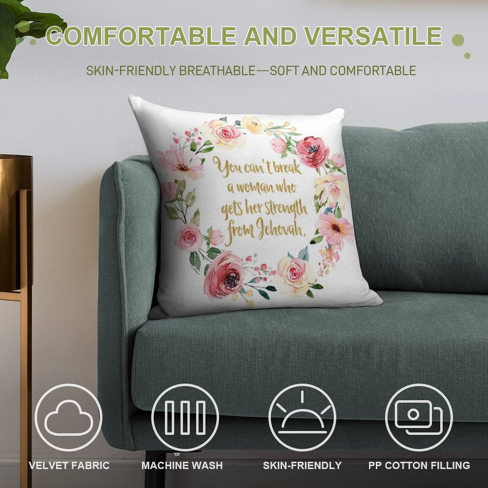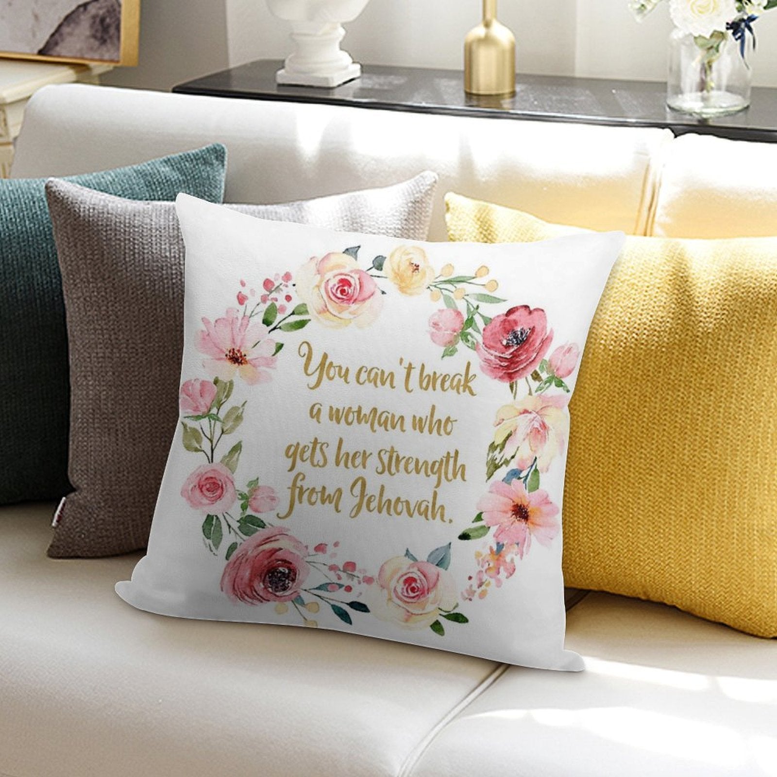 ✔️ Fits Any Style – Neutral tones and plush texture suit all You Can't Break A Woman Who Gets Her Strength From Jehovah decors.